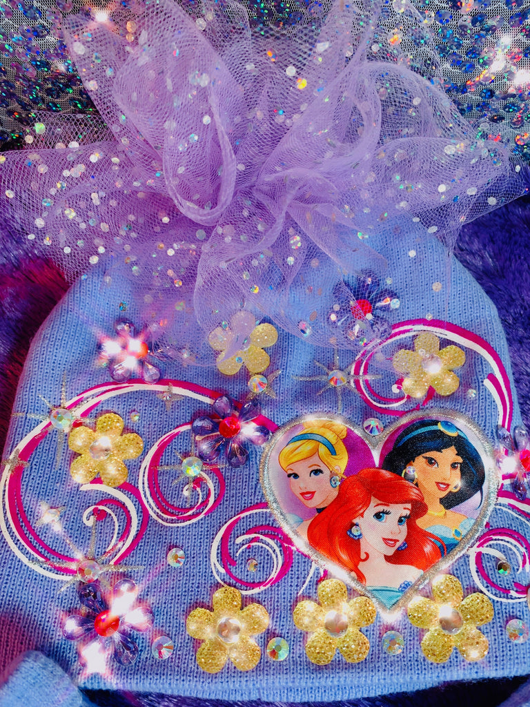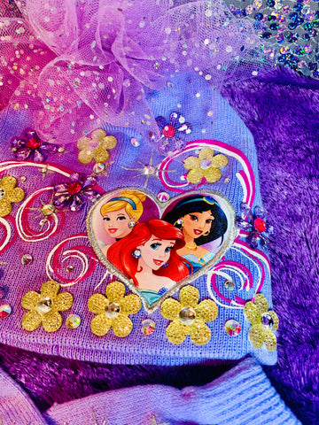 Hand blinged with rhinestones and crystals one of a kind  Disney Princess Hat & Glove Set  for girls toddlers 2–4 years old